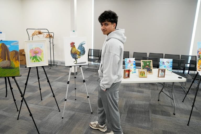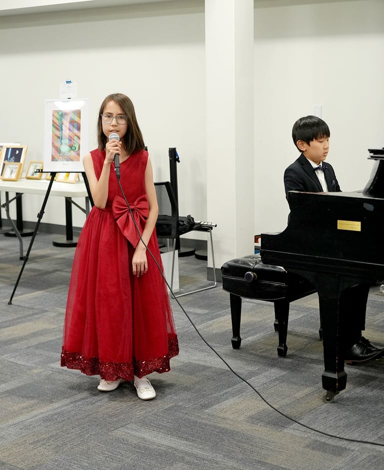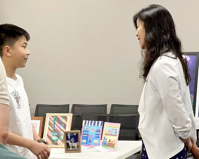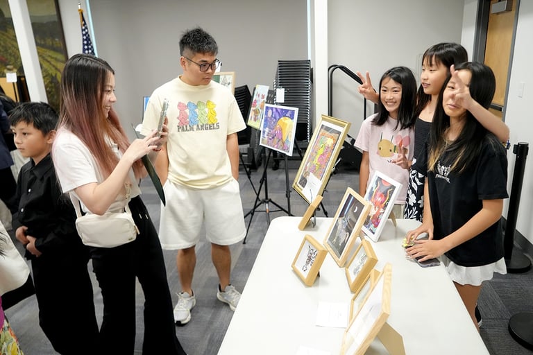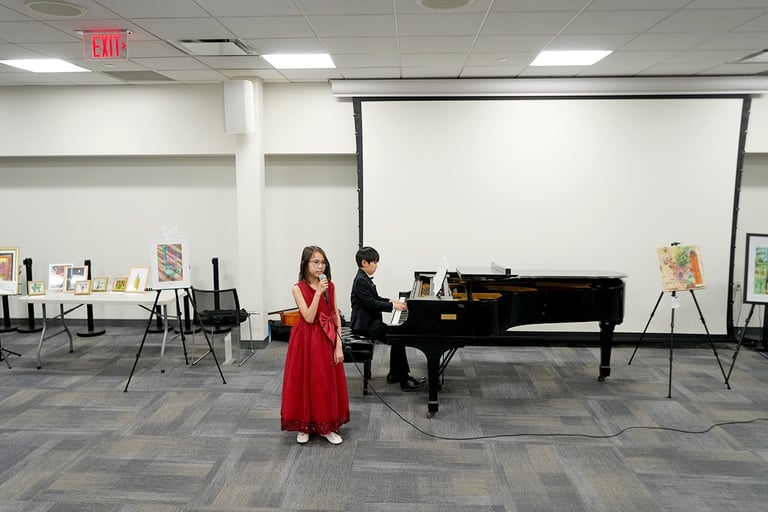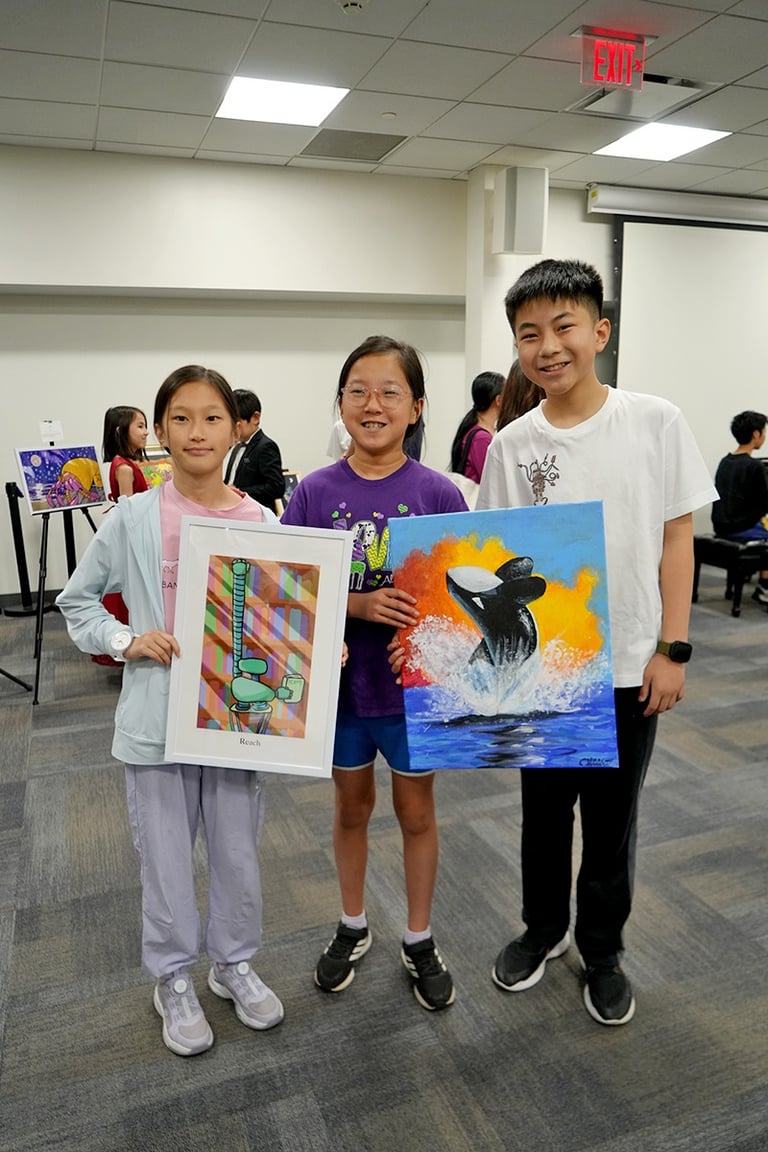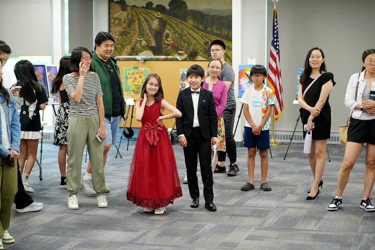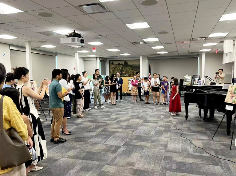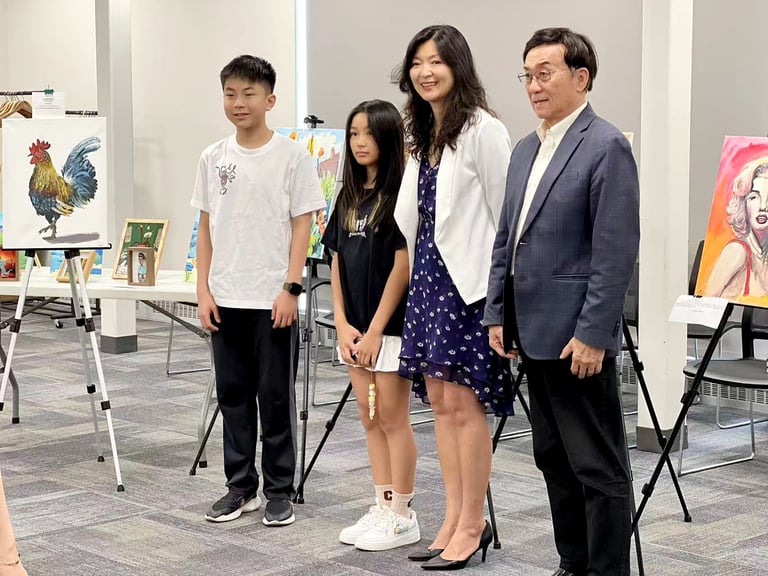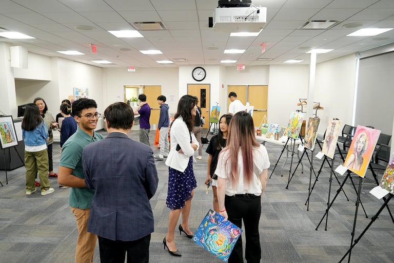 The "Colors of Life" art exhibition brought together the creativity and compassion of local young artists and musicians to raise awareness for blood cancer treatments. Held at the Great Neck Public Library, the event drew strong community support and featured more than 30 original artworks by 8 talented young artists, including standout contributors Yuhan Huang and Charlie Zhong. In addition to the visual art, guests were treated to stirring live music and vocal performances by local youth musicians. The event was supported by the Great Neck Public Library, the Gift of Life Bone Marrow Registry, and Great Neck Harmony.